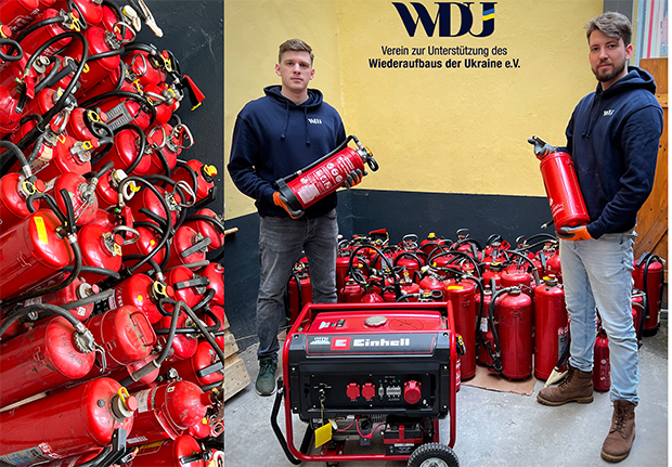 Feuerlöscher und Generatoren wurden direkt in das Kriegsgebiet geschickt, um die ukrainische Feuerwehr bei ihren Aufgaben zur Rettung der Zivilbevölkerung zu unterstützen.